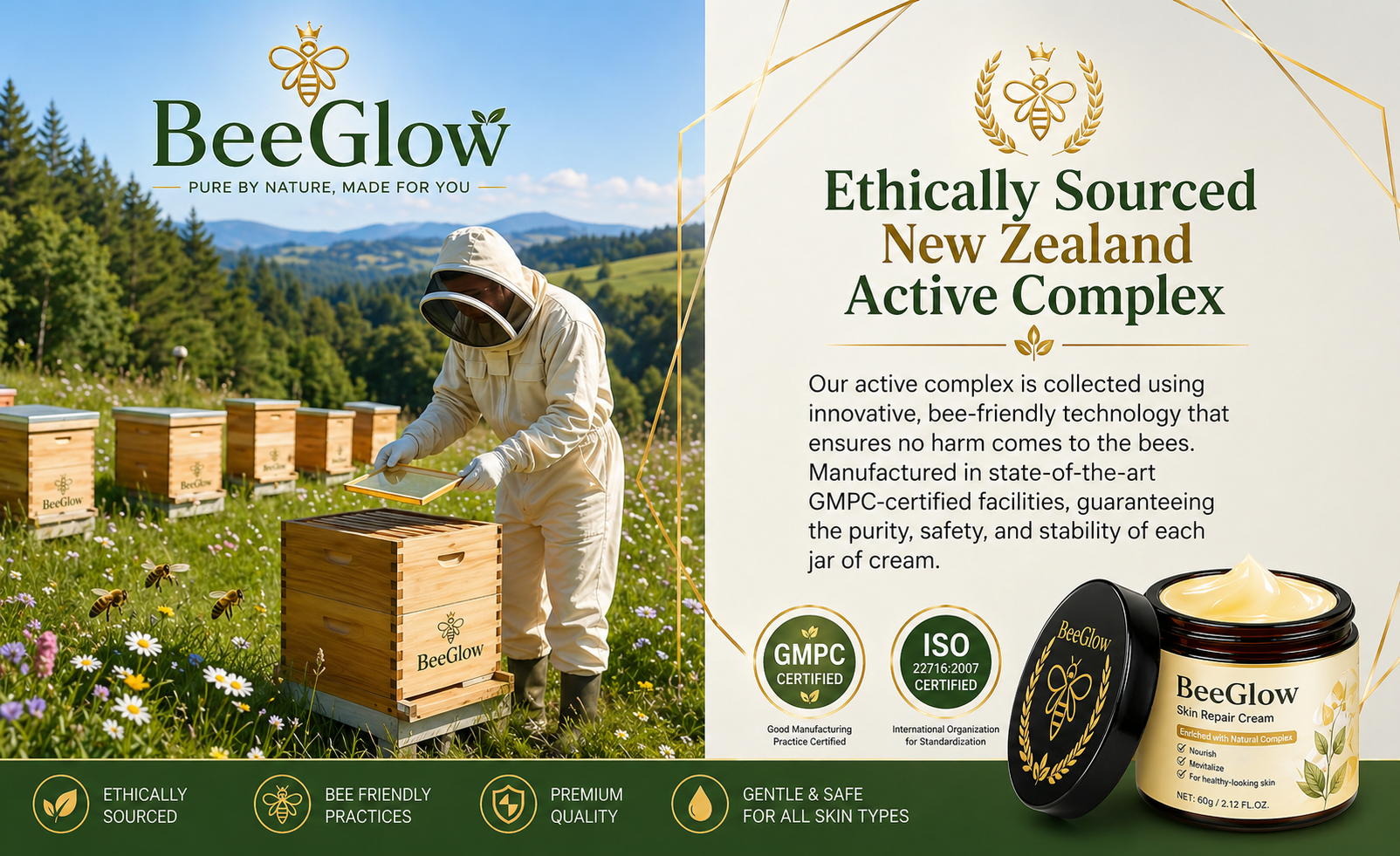 🍯 BeeGlow Complex – Helps nourish and revitalize skin